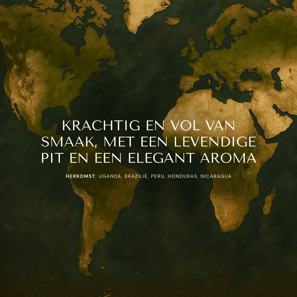 Ervaar een krachtige, robuuste filterkoffie met tonen van donkere chocolade, geroosterde noten en een vleugje karamel. Vol en intens met een levendige pit en een elegant, gelaagd aroma dat de zintuigen prikkelt. Een harmonieuze melange voor de ware koffiekenner die geniet van een moment pure luxe.